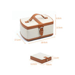 Cette Boîte à Bijoux Voyageurs en Cuir fera le bonheur de tous les voyageurs. Son design original, qui s'apparente à une petite valise, et sa poignée en cuir la rendent à la fois élégante et facile à transporter. Fabriquée en similicuir et en tissu, elle est la solution parfaite pour organiser vos bijoux, que vous soyez à la maison ou en déplacement.