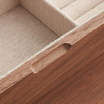 En effet, cette boîte en bois vous propose un compartiment spécialement conçu pour accueillir bagues et boucles d'oreilles, garni de coussins rembourrés. Un espace plus généreux se réserve aux accessoires de plus grande envergure, tels que montres et bracelets rigides. Le bois de noyer, gage de solidité et de raffinement, confère à cet artisanat d'excellence une durabilité qui perdure à travers les générations.