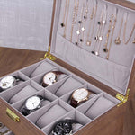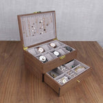 Avec ses compartiments bien conçus, cette boîte à bijoux en bois offre un rangement pratique et efficace pour les montres, les boutons de manchette, les bagues, les bracelets et les colliers.