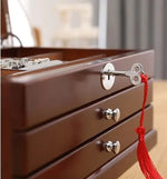 Élégante et fonctionnelle, cette boîte à bijoux en bois massif est pensée pour sublimer vos trésors tout en leur offrant une protection optimale. Son revêtement en velours soyeux accueille chaque bijou avec délicatesse, tandis que sa serrure avec clé vous permet de garder vos pièces les plus précieuses en sécurité.
