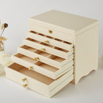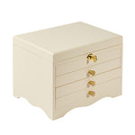 C'est l'abris qu'il faut pour vos colliers, vos bagues vos pendentifs. Parfaitement séparés dans quatre tiroirs compartimentés, vous pouvez organiser en toute facilité les objets de petites et de grande tailles.