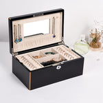 Avec sa conception pratique, elle dispose de plusieurs compartiments et d'un plateau amovible pour organiser facilement tous vos bijoux, que ce soit des colliers, des bracelets, des boucles d'oreilles ou des bagues. L'intérieur est complètement enduit de velours ultra doux pour empêcher les chocs et les rayures. Dotée d'un miroir et d'une serrure pour une sécurité accrue, elle est à la fois pratique et charmante. C'est le choix parfait pour offrir un rangement sûr et élégant pour vos bijoux. Profitez de la livraison standard offerte 🚚.
