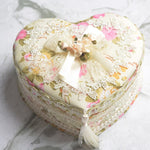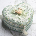 Saisissez cette délicieuse Boîte à Bijoux Cœur pour réorganiser vos biens les plus beaux. Son design vintage et romantique, avec ses froufrous et sa dentelle, en fait une pièce unique qui évoque un charme d'antan, tout en restant un objet de rangement pratique et moderne.