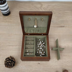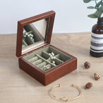 Découvrez cette petite Boîte à Bijoux Compacte, l'écrin idéal pour ranger vos parures. Fabriquée en bois massif avec un style intemporel, elle convient aussi bien aux hommes qu'aux femmes.