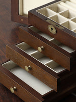 Rangez vos plus belles parures dans cette Boîte à Bijoux d'Exception, un écrin spacieux et sécurisé aux finitions de grande qualité. Fabriquée en bois massif avec une fabrication artisanale, cette boîte est un véritable meuble à bijoux, conçu pour durer.