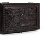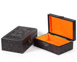 Organisez vos bijoux les plus magnifiques dans cette Boîte à Bijoux Dragon, un véritable chef-d'œuvre artisanal. Fabriquée en Ébène Noir d'Afrique, cette boîte représente un dragon, symbole de puissance, de sagesse et de chance dans la culture asiatique. Le dragon est sculpté avec finesse, recouvrant toute la surface de la boîte et lui conférant une allure majestueuse.