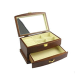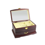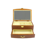 Ce coffret, qui peut contenir toutes sortes de bijoux, est astucieusement organisé avec un espace supérieur pour ranger soigneusement vos bagues et anneaux, et un tiroir pour accueillir vos chaînes et colliers. L'ensemble est entièrement recouvert de velours doux pour une protection optimale. Le couvercle est muni d'un miroir recouvrant toute la surface, et un fermoir doré vient contraster élégamment avec la teinte du bois. C'est la solution de rangement idéale pour un usage quotidien, alliant style vintage, fonctionnalité et durabilité. Profitez de la livraison standard offerte 🚚.