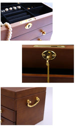 Ses poignées facilitent son transport du salon à la chambre à coucher tandis que sa serrure avec sa clef permet de garder vos parures loin des regards indiscrets.