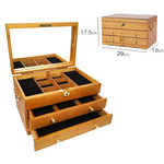 Cette Boîte à Bijoux vous permet sur trois couches de préserver vos petits trésors le tout sur un revêtement de velours duveteux. Cet écrin en bois massif est l'incarnation de la simplicité et de l'authenticité qui se dégage de cette noble matière.