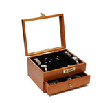 Compartimentée, elle dispose de coussinets pour le rangement de vos montres et d'un tiroir offrant un espace de stockage plus large pour vos bracelets ou bijoux en bois. Une serrure à code, très pratique, assure la sécurité de vos joyaux. C'est l'écrin idéal pour ceux qui recherchent une solution de rangement à la fois élégante, fonctionnelle et sécurisée. Profitez de la livraison standard offerte 🚚.
