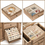 - Rangements : 6 couches de rangement, tiroirs divisés, compartiments pour bagues et boucles d'oreilles