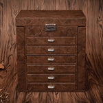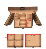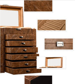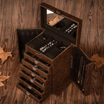 Cette boîte est un véritable meuble à bijoux avec ses 6 tiroirs pour ranger toutes sortes d'accessoires. La partie supérieure offre des espaces dédiés pour vos bagues et boucles d'oreilles, tandis que deux volets latéraux sont équipés de crochets pour suspendre vos colliers, chaînes et pendentifs. Avec ses finitions soignées, son miroir et sa serrure, ce coffret haut de gamme est la solution parfaite pour organiser et protéger vos bijoux les plus précieux. Profitez de la livraison standard offerte 🚚.