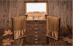 - Rangements : 6 tiroirs, espaces pour bagues et boucles d'oreilles, crochets pour colliers, chaînes et pendentifs sur deux volets latéraux