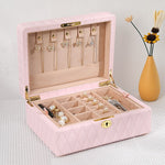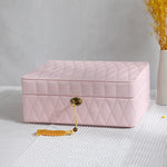 La douceur d'un similicuir et le charme doux et féminin pour préserver vos belles collections. Découvrez notre sublime boîte à bijoux femme luxe et son design élégant et intemporelle. Qui n'a jamais rêvé de ranger ses belle parures dans un écrin digne de ce nom. Rassemblez dès maintenant vos colliers, vos bagues et tous vos diamants pour faire le tri et les protéger des usures du temps. Fini la contrariété de la boucle d'oreilles orpheline, ou d'une vilaine rayure sur votre anneau en argent préféré.