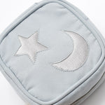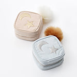 Découvrez cette petite boîte à bijoux pour fille, un écrin souple et compact orné d'un motif original de lune et d'étoiles. Fabriquée en tissu avec un intérieur en velours, elle est parfaite pour ranger les bijoux des fillettes.
