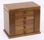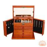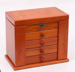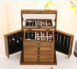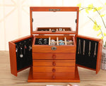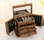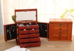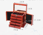 - Rangements : Deux volets avec crochets pour colliers, compartiments pour bagues et boucles d'oreilles, quatre tiroirs