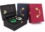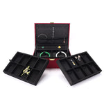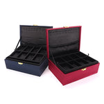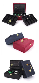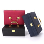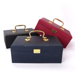 Découvrez cette magnifique Boîte à Bijoux de Grande Taille, un écrin idéal pour organiser une grande collection de bijoux. Son design simple et moderne, disponible en similicuir rouge, bleu ou noir, est rehaussé par un fermoir et une poignée dorés, lui conférant une touche d'élégance.