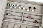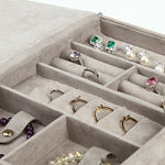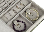 À l’intérieur, le velours soyeux accueille vos trésors avec soin : crochets pour colliers et pendentifs, boudins rembourrés pour bagues et boucles d’oreilles, et compartiments modulables pour bracelets et bijoux fantaisie.
