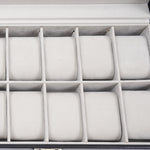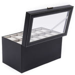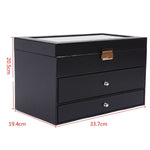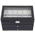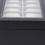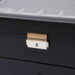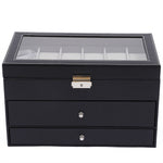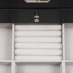 Tous les bijoux masculins trouveront une place dans ce grand coffret en similicuir. Muni d'un compartiment pour ranger une collection de montres et de tiroir pour ranger les plus petits accessoires comme les bagues ou les boutons de manchettes. Boîte spacieuse et sobre munie d'une serrure.