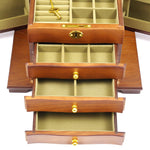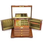 Elle vous propose quatre couches de rangement superposées, dont trois tiroirs pour stocker des objets volumineux. Des bracelets rigides en passant par une montre ou un cosmétique, vous pourrez glisser aisément vos accessoires beauté de tout genre. Son large miroir apposé sur le couvercle sera votre appui pour les quelques retouches maquillage du matin.