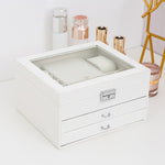 - Rangements : Surface adaptée aux accessoires, espace velours pour bagues et boucles d'oreilles, deux tiroirs avec séparateurs