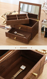 Fabriquée en bois massif, cette boîte est à la fois robuste et durable. Elle dispose de plusieurs rangements astucieux, dont un plateau amovible pour les bagues, boucles d'oreilles et colliers, et un tiroir avec de larges rangements pour les objets plus encombrants comme les bracelets rigides. Le couvercle est muni d'un grand miroir, ce qui la rend très pratique. Cette boîte est disponible en stock limité, l'occasion de vous offrir un meuble à bijoux somptueux et fonctionnel. Profitez de la livraison standard offerte 🚚.