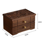 Organisez vos précieuses parures dans cette Boîte à Bijoux Somptueuse, un écrin luxueux en bois massif conçu pour faciliter le rangement de vos bijoux au quotidien. Son design simple et épuré, avec un ton proche du wengé, est rehaussé par un élégant motif gravé et des pièces de quincaillerie dorées.