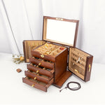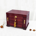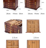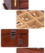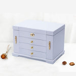 Équipée d'un large miroir et d'une serrure pour plus de sécurité, cette boîte résistera durablement et gardera l'éclat de votre bijouterie. Elle est entièrement revêtue de velours doux à l'intérieur pour prévenir les coups et les égratignures. Avec ses tiroirs et ses crochets, elle vous permet de ranger vos joyaux de façon sécurisée et organisée. Profitez de la livraison standard offerte 🚚 et offrez-vous ce coffret superbe et intemporel.
