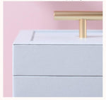 Cette boîte à bijoux grande capacité se distingue par son design épuré et sa teinte douce, captivant le regard.