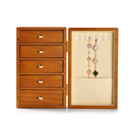 Elle se compose de 5 tiroirs et d'une porte équipée de crochets pour la suspension de vos colliers et pendentifs. L'intérieur est soigneusement recouvert de velours traité anti-ternissement pour garantir la préservation de vos précieux bijoux. Les compartiments rembourrés sont parfaits pour vos bagues et boucles d'oreilles, tandis que des espaces plus volumineux accueillent vos bracelets et montres. Avec cette boîte en bois, l'organisation de vos bijoux devient un jeu d'enfant. Profitez de la livraison standard offerte 🚚.