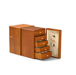 - Rangements : 5 tiroirs, une porte avec crochets pour colliers et pendentifs, compartiments rembourrés pour bagues et boucles d'oreilles, espaces pour bracelets et montres