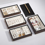 Un autre module vous permettra quand à lui de déposer et d'accrocher soigneusement vos plus beaux colliers et chaînes. Dites adieu au chevauchement de vos accessoires beauté préférés, notre coffret en bois se charge de l'entretien quotidien et de la protection de tous vos petits trésors.
