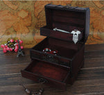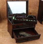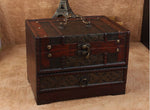 Découvrez la Grande Boîte à Bijoux Ancienne, une grande boîte de rangement en bois massif de Chêne et en acier avec un style vintage. Très spacieuse, elle peut également servir de coiffeuse et accueillir une petite série de cosmétiques en plus de vos bijoux.