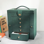 Spacieuse et majestueuse, voici la grande boîte à bijoux verte et sa capacité de rangement xxl. Organisez et faites agrandir votre collection de bijoux, vous disposez avec ce bel écrin d'un organisateur capable de recevoir toutes sortes d'accessoires.