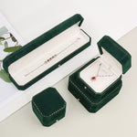 Découvrez cet Écrin à Bague Moderne, le choix parfait pour une demande en mariage inoubliable ou pour sublimer l'éclat de votre bague de fiançailles. Son design duveteux, sa couleur vert soyeux et ses liserés dorés en font un écrin luxueux et élégant.