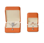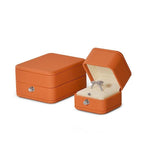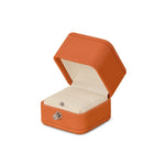Fabriqué en similicuir rigide de couleur vive, disponible en orange ou indigo (ou vert), il offre de belles finitions. L'intérieur est entièrement enduit de velours soyeux, assurant un support idéal et une protection optimale pour votre précieux anneau. Sa dimension compacte de 5x5x5 cm lui permet d'être emporté discrètement et de se glisser facilement dans une poche, prêt pour le grand moment.