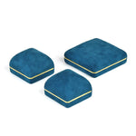 Tous en Velours Bleu pour garder et préserver la splendeur de vos chaînes, ou de vos petits pendentifs. Un magnifique Écrin à Bijoux qui embellira davantage vos parures. Un bleu léger et une texture agréable pour ce petit rangement à collier détaillé par un liseré en or.